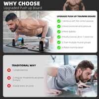 Make push-ups more structured without adding bulky gear. This 28-in-1 push-up board uses color-coded handle positions to help you vary hand placement and focus on different upper-body movement patterns. Insert the handles into the marked slots, pick a position, and run clean sets with consistent form.