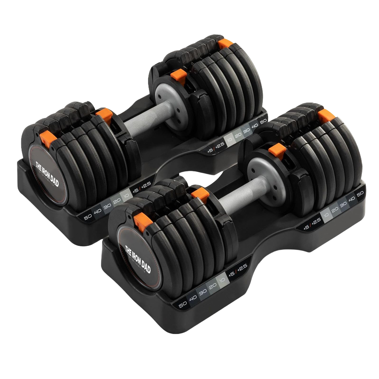 The Iron Dad Adjustable Dumbbell Set (Pair) 10–55 lb / 5–25 kg — 15 Settings + Storage Tray